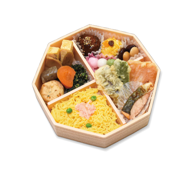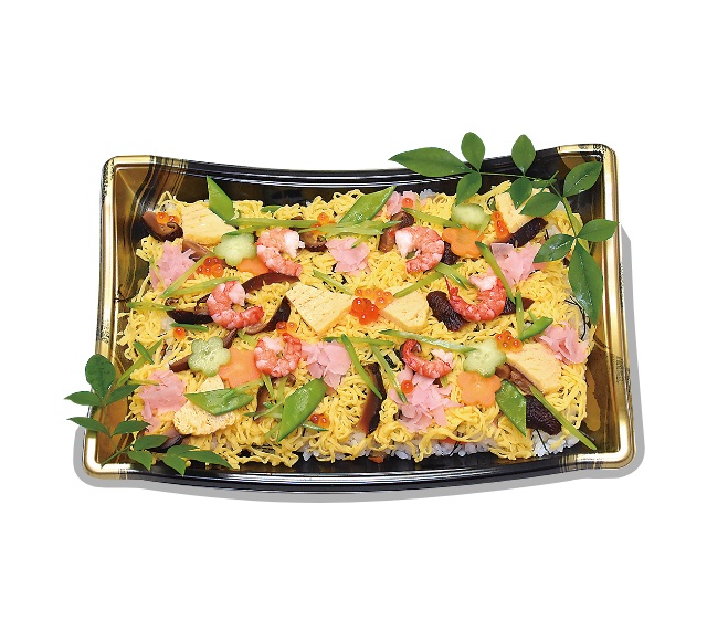 ちらし寿司に煮物や揚げ物などを詰めた、 彩り豊かなお弁当です。