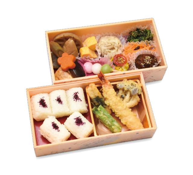 にぎやかでバラエティ豊かな豪華二段弁当。どなたでもご満足いただける味わいです。
